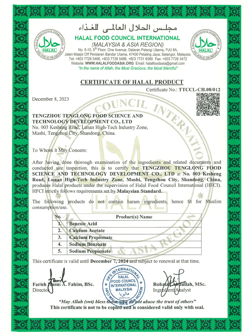 公司專(zhuān)業(yè)生產(chǎn)苯甲酸,苯甲酸鈉,丙酸鈣,丙酸鈉和醋酸鈣等系列產(chǎn)品